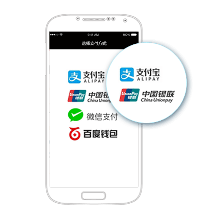 鼎尖支付,为iOS/Android原生/H5 App提供支付解决方案:支持微信支付、支付宝支付、银联手机支付、百度钱包等。